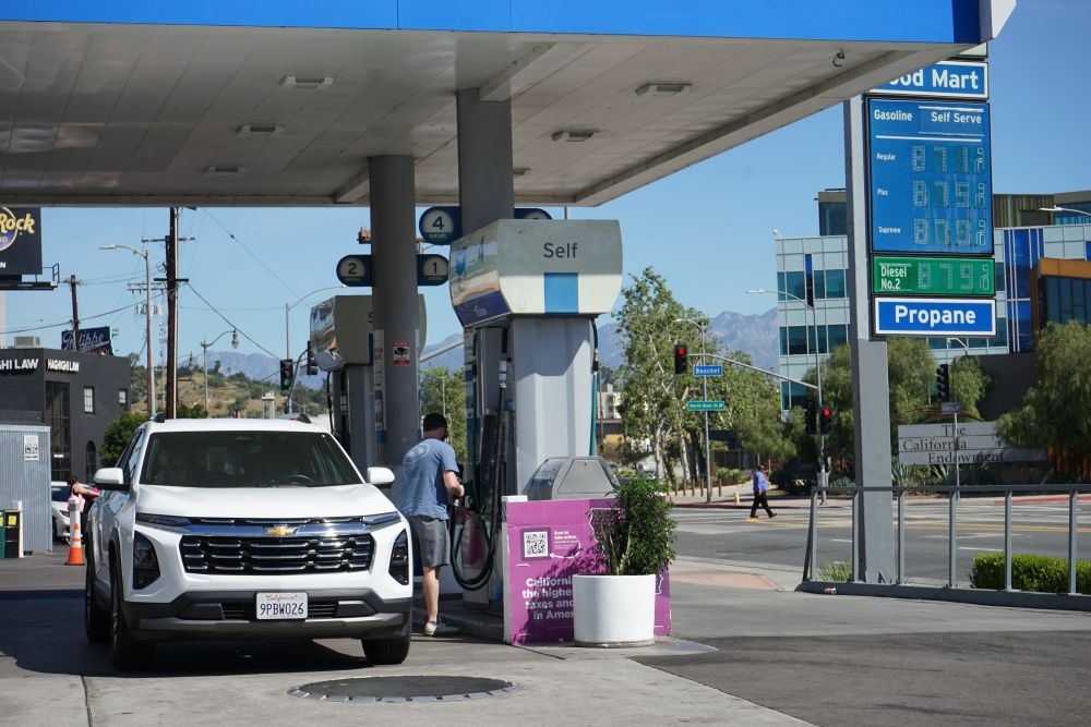 3月17日,主顾在好意思国加利福尼亚州洛杉矶市中心的一家加油站给车辆加油。新华社发(曾慧摄)